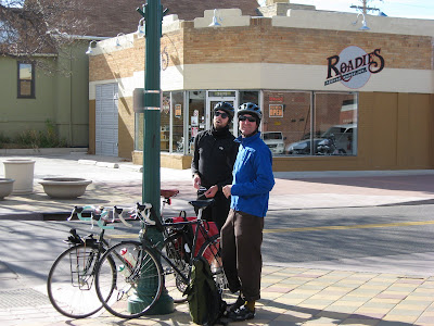 On Saturday morning, Nicky B. assembled a merry band of cold-weather bad-asses to embark on a ride to Olde Town Arvada by way of the Clear Creek Trail. Temperature at start time: 19